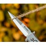 Для того чтобы открыть лезвие следует нажать кнопку, которая незначительно выступает на рукояти это является гарантией того, что нож не откроется самостоятельно от случайного нажатия в кармане. Чтобы сложить нож G707, следует нажать кнопку и второй рукой спрятать лезвие в рукоять (она, к слову, выполнена из алюминия и имеет деревянные вставки). Прекрасная модель для использования в городских условиях.