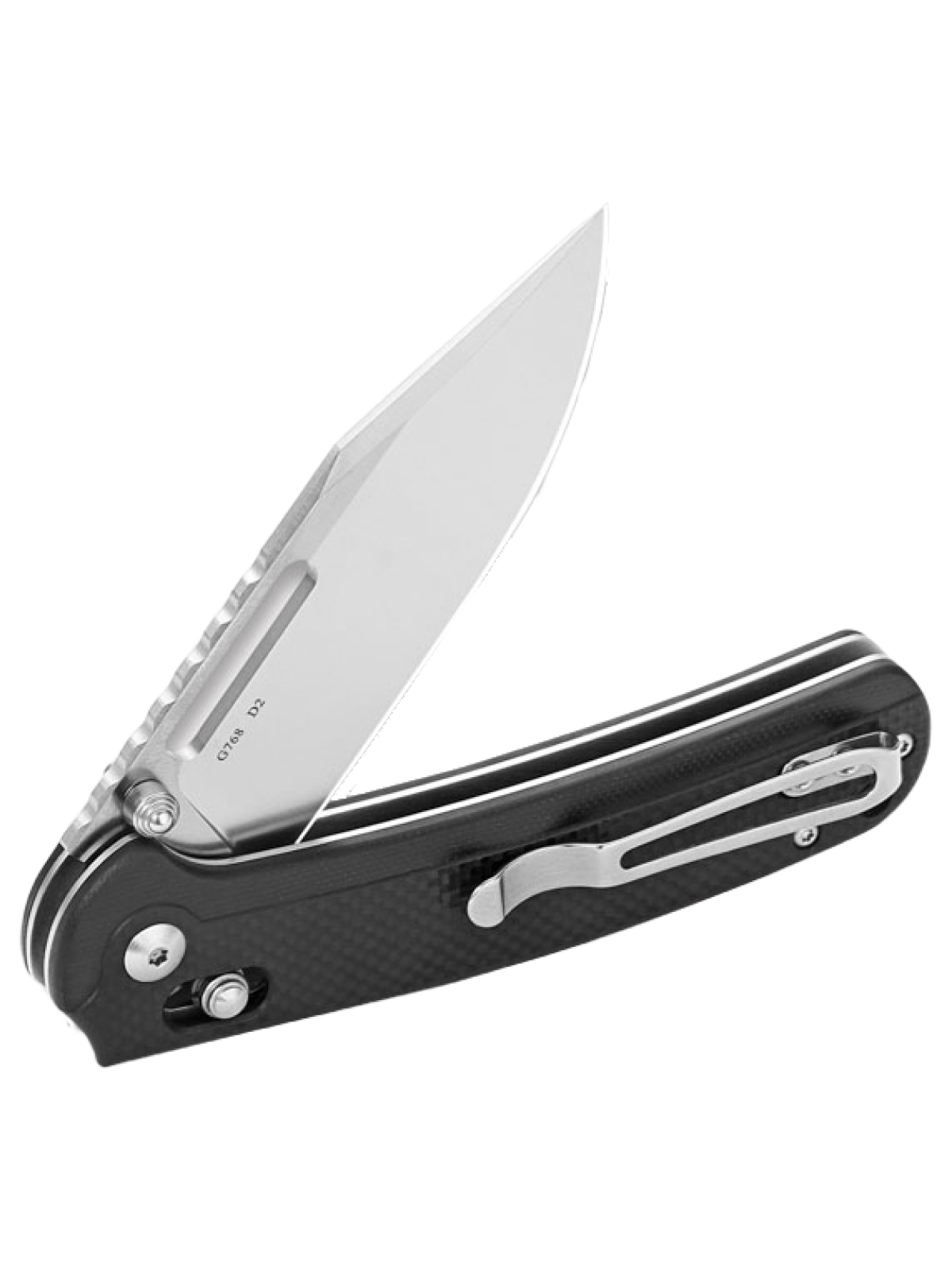 Складной механизм оснащен замком Axis Lock, что обеспечивает надежную фиксацию клинка в открытом положении. Для удобства ношения предусмотрена переставная глубокая клипса, позволяющая носить нож как на поясе, так и на кармане. Нож Ganzo G768 обладает несколькими способами открытия, включая шпенек или отверстие в клинке. Наличие длинного упора для пальца на обухе облегчает удержание и использование ножа, делая его удобным для людей с широкой ладонью.