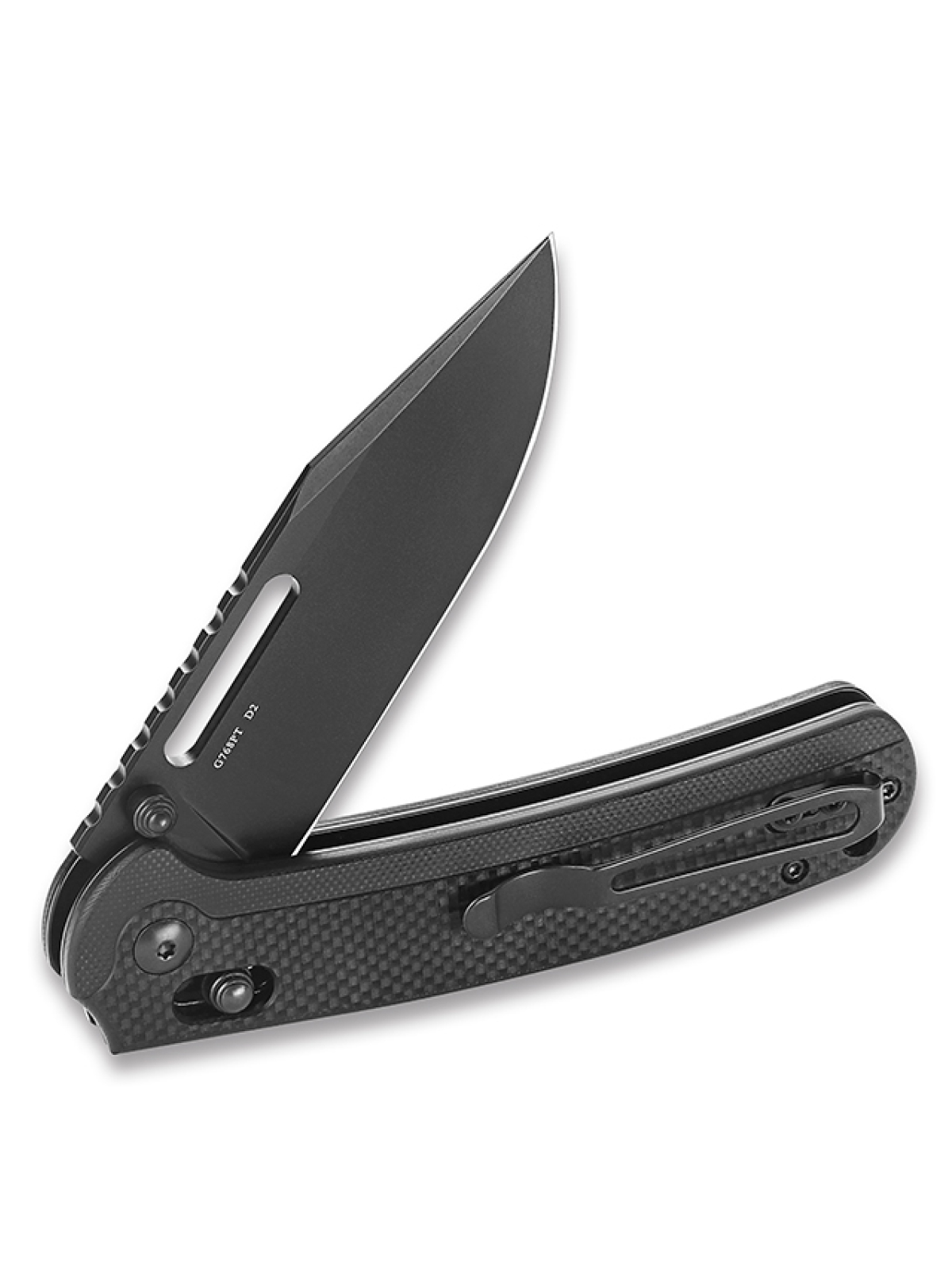 Модель оснащена глубокой переставной клипсой, что позволяет удобно носить нож в кармане или на ремне. Открывается нож с помощью шпенька или отверстия в клинке. Несколько способов открытия делают его использование еще более удобным и универсальным. На обухе клинка предусмотрен упор для пальца, обеспечивающий дополнительный контроль и удобство при работе с ножом.