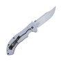 Раскрыть нож можно двумя способами: либо с помощью фирменного "вейва", либо при помощи двухстороннего шпенька на обухе. Клинок в форме боуи обеспечивает хорошую проникающую способность и придаёт серьёзный вид.