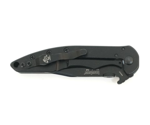 Складной нож марки Модель Kershaw CQC-1K имеет специальную форму клинка под названием Clip Point, с помощью которой вы сможете получить самый качественный рез. Антибликовые свойства достигнуты благодаря покрытию Black-Oxide, которое еще защищает и от всевозможных потертостей. Лезвие изготовлено из высококачественной стали, свойства которой устойчивы к коррозии и длительное время могут сохранять режущие характеристики. Рукоять имеет стальную рамку и с одной стороны текстурированную пластиковую накладку. С другой части рукояти расположен замок Frame Lock, а в качестве покрытия выбрана сталь. Нож оборудован уникальной системой ускоренного открытия, которая запатентована компанией-производителем. Работа данной системы заключается в следующем: как только вы начинаете вытаскивать нож из кармана, он цепляется плавником за ткань и удерживает лезвие в закрытом положении. В это же время с помощью осевого винта, рукоять начинает вращаться вокруг зафиксированного клинка и по инерции открывает нож. В качестве повседневного способа открытия используется дисковый шпенек. Эта модель имеет превосходные характеристики и размеры для ежедневной носки в городских условиях. А с помощью вышеуказанной системы вы сможете привести нож в рабочее состояние в самой экстремальной ситуации.