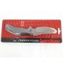 LoneRock Folder Drop Point - охотничий нож, предназначенный для разделывания туш средних по размерам животных. Его клинок создан из высокоуглеродистой стали 8Cr13MoV, обладающей высокими прочностью, твёрдостью, износоустойчивостью и упругостью при относительно низкой цене. Эта сталь хорошо удерживает заточку, потому подходит для производства скинеров. Клинок имеет каплевидную форму - его обух нисходит к его острию с небольшим прогибом в основе и с незначительным выступом возле острия, находящегося выше центральной оси, а лезвие имеет форму пологой длинной дуги. Средняя часть обуха имеет зубчатую насечку, клинок возле обуха оборудован глубокими долами, идущими до середины. Заточка лезвия обычная. Клинок покрыт карбо-нитридом титана, который придаёт тёмную окраску и увеличивает коррозионную устойчивость стали клинка и её прочность.