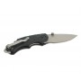 Форма клинка - Drop Point, обух приспущен в сторону острия. Клинки данного типа - наиболее универсальные колющие и режущие инструменты. Проникающие способности клинка улучшены размещением острия на оси наибольшей нагрузки при колющем действии. Клинок этой модели короткий и широкий, потому нож может использоваться для обработки толстых и прочных материалов при технических работах. Заточка лезвия обычная, спуски вогнуты и располагаются по практически всей ширине клинка. Имеется фальшлезвие на обухе, а благодаря сведению граней фальшлезвия и лезвия с формированием рёбер жёсткости клинок имеет высокую прочность. Клинок обработан технологией Bead Blast, обеспечивающей матовую поверхность.