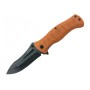 Рукоять оранжевого цвета не позволит ножу затеряться в зеленой траве. Материал рукояти – классический G-10. Ее интересная текстура позволяет ножу отлично держаться в руке даже в мокрую погоду или холодное время года.
