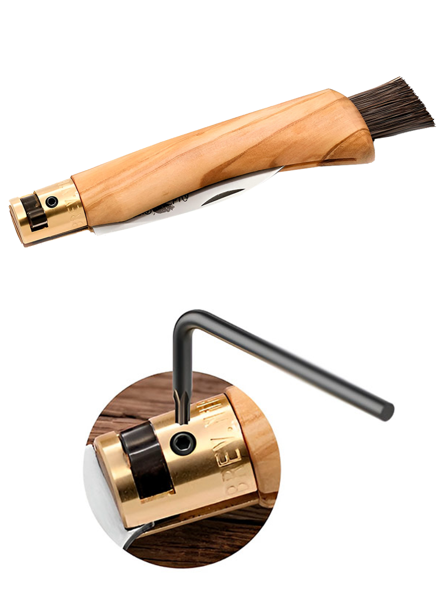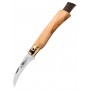 Специально созданный узкий и тонкий клинок уникальной формы обеспечивает ровный, уверенный срез ножек грибов практически любого размера, от тоненьких опять до больших белых и мощных подберёзовиков. Так как это специальный грибной нож, он оснащен встроенной в рукоять кисточкой из конского волоса — все грибы попадут в корзинку чистыми. Модель очень лёгкая (43 грамма) и помещается в карман верхней одежды.