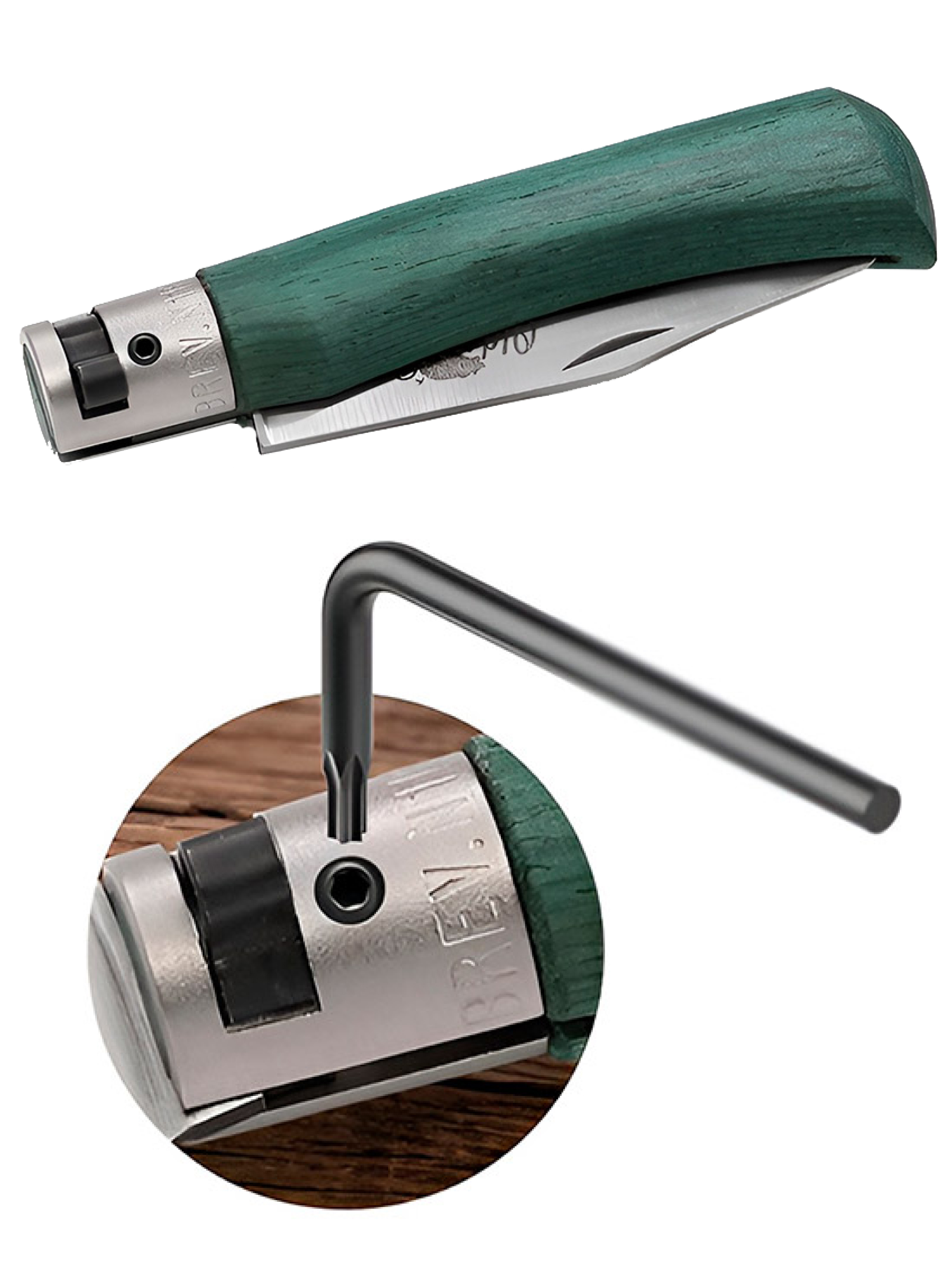 Клинки ножей Antonini Old Bear изготавливаются из нержавеющей стали W1.4060, легкой в уходе и достаточно хорошо держащей заточку для своего класса. Высокие спуски обеспечивает клинку превосходные режущие свойства. При этом править режущую кромку легко как вручную (на камнях), так и на любых «точилках». Рукоять с легким изгибом на «брюшке» лежит в руке удобно и надежно. Выполнена из стабилизированной древесины с зеленым ламинированием и тактильно приятной текстурой. Спереди охвачена латунным больстером, который увеличивает прочность рукояти, защищая её от растрескивания при ударах и падениях.