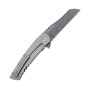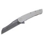 Клинок с толстым обухом и вогнутыми спусками выполнен из инструментальной стали D2, на его поверхность нанесено чёрное покрытием blackwash, на обухе имеется крупное рифление. Извлечение клинка происходит с помощью флиппера, фиксация в открытом положении осуществляется замком frame-lock, оснащённым металлически сухарём.
