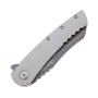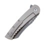 Рукоять ножа слегка изогнутой формы, выполнена из титана, имеет сужающуюся к концу форму и отлично ложится в руку. Флиппера формируется упор, предотвращающий соскальзывание руки на режущую кромку во время работы. Для ношения ножа в кармане предусмотрена удобная клипса.