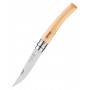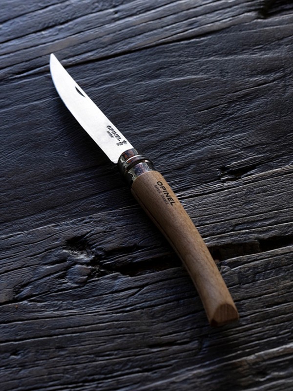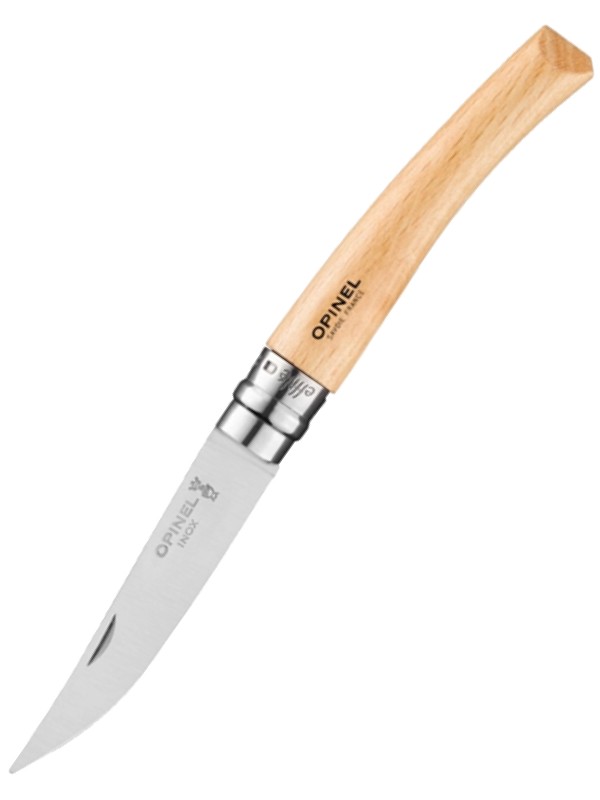 Нож Opinel №8 обладает более узким и гибким лезвием, чем традиционные модели, поскольку предназначен для таких тонких кулинарных операций как разделка рыбы, мяса и птицы. Обтекаемая рукоять из бука создана для комфортного удержания ножа в руке. А благодаря складной конструкции и легкому весу его удобно брать с собой в любые поездки на природу.