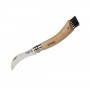 Нож Opinel для грибников №8. Изогнутый клинок. Обух клинка оснащен незаостренными зубцами: ими очень удобно удалять с гриба мох, остатки грибницы листья, грязь. Щеточка на торце рукояти очень полезна для устранения с поверхности гриба листьев, травы, земли, песка. Идеальный спутник для «тихой» охоты.