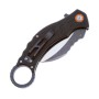 Рукоять из G10 имеет рельефный рисунок и удобную форму, что в сумме обеспечивает надёжное удержание ножа в руке. Нож оснащён керамическими шарикоподшипниками, что делает его работу максимально быстрой, лёгкой и плавной. Рукоять ножа оснащена кольцом в тыльной части для более удобного хвата, а также карманной клипсой.