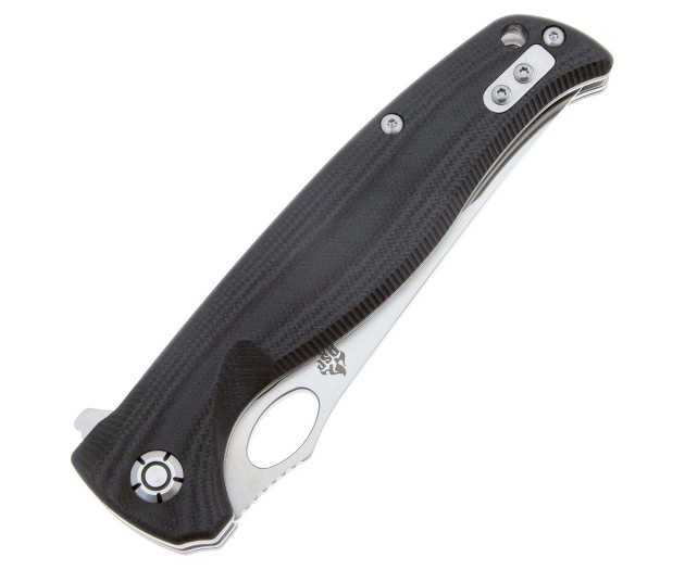 Верхняя часть клинка и обух имеют чёрное покрытие, сам же клинок имеет сатиновое покрытие, извлекается с помощью флиппера или отверстия под обухом.