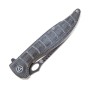 Верхняя часть клинка и обух имеют чёрное покрытие, сам же клинок имеет сатиновое покрытие, извлекается с помощью флиппера. Рукоять из микарты приятная на ощупь, имеет удобную форму, что в обеспечивает надёжное удержание ножа в руке.