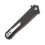 Верхняя часть клинка и обух имеют чёрное покрытие, сам же клинок имеет сатиновое покрытие, извлекается с помощью флиппера. Рукоять из карбона приятная на ощупь, имеет удобную форму, что в обеспечивает надёжное удержание ножа в руке.