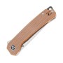 Клинок имеет сатиновое покрытие, извлекается с помощью удобного флиппера одной рукой. Рукоять из приятной на ощупь микарты имеет удобную форму, что в обеспечивает надёжное удержание ножа в руке.