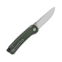 Клинок имеет сатиновое покрытие, извлекается с помощью удобного флиппера одной рукой. Рукоять из приятной на ощупь микарты имеет удобную форму, что в обеспечивает надёжное удержание ножа в руке.
