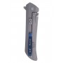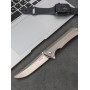 Новинка представляет собой складной туристический экземпляр, который запросто поместится в кармане, сумке либо рюкзаке. Тип заточки – прямой. Форма лезвия – normal blade. Это универсальный, классический профиль, который в быту носит название «финка». На сегодняшний момент эта форма – одна из наиболее популярных разновидностей клинка. Длина клинка 9,2 см, выполнен из нержавеющей стали марки S35VN. Этот металлический сплав представляет собой улучшенный вариант CPM S30V. Ножи из подобной стали характеризуются более высокими показателями вязкости при ударных нагрузках, а также легче поддаются полировке во время изготовления.