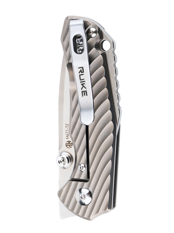 Лезвие формы clip-point. Этот тип похож на разновидность drop-point без обуха. Кончик менее прочный, но показывает хорошие проникающие свойства. Встречаются варианты clip-point с фальшлезвием на обухе. Такой клинок можно охарактеризовать, как универсальный вид. Часто лезвия соответствующего типа применяются охотниками и выживальщиками. Модель Ruike M671 оптимальна в целях туризма и просто как вариант на каждый день.