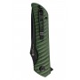 Удобная рукоятка выполнена из микарты. Это материал с высокой прочностью и плотностью, он не впитывает запахи, обладает стабильностью в различных температурных условиях и стойкостью к воздействию химическими веществами и ударам. Рельефный узор на рукояти в виде продольных линий обеспечивает удобный и надежный захват даже при использовании в перчатках.