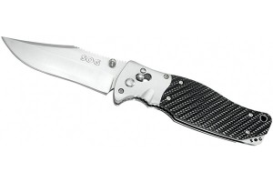 Клинок сделан с классическим для раскладных ножей типом шлифа Hollow Grind и обработан покрытием Satin finish. Кратоновая рукоять имеет эргономичную форму и надежно ложится в ладонь во время работы. Kraton® материал нескользкий, что повышает удобство при работе.
