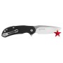 Насечка на обухе удобна при силовом резе, а выемка на пяте добавляет ножу функциональности. Флиппер служит дополнительной защитой на рукояти. Нож великолепен в работе, подходит под несколько хватов, для удобства снабжен отверстием под темляк. Данная модификация имеет рукоять черного цвета.