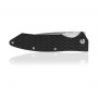 А вот конструкция и материалы для создания рукоятки в представленных моделях разная. В версии Resident F15-51 используются стальной лайнер и текстурированные накладки из алюминиевого сплава. Фиксирует клинок простой и надёжный Liner Lock.