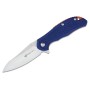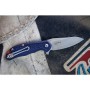 Накладки синего цвета из пластика FRN текстурированы для лучшего сцепления с ладонью. Спейсер между плашками из анодированного алюминия оранжевого цвета служит не только яркой деталью, но и посадочным местом для темляка.