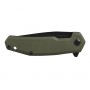 Широкий клинок модели Tenet F30-33 изготовлен с применением инструментальной стали марки D2, твёрдость используемой стали заявлена производителем в пределах 58-60 единиц по шкале HRC. Для создания рукоятки используются стальные лайнеры и текстурированные накладки оливкового цвета из прочного износостойкого материала G10.
