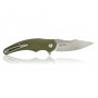 Клинок модели F55M-02 Arcturus изготовлен из инструментальной стали марки D2, твердость которой заявлена на уровне 58-60 HRC. Сатиновый клинок извлекается при помощи флиппера и фиксируется стальным замком Liner-Lock.