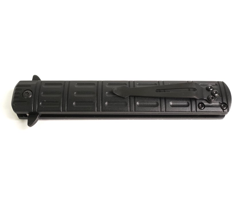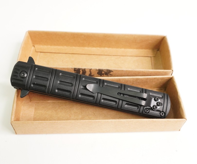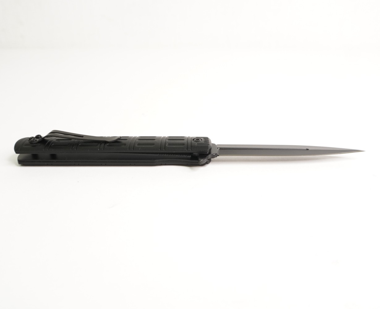 Материал клинка – сталь 440С, материал рукоятки – сплав на основе алюминия. Заточка ножа односторонняя, режущая кромка идеально гладкая.