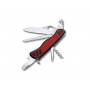 Самым ключевым моментом в карманном армейском ноже из Швейцарии считается молниеносная возможность для открытия и готовность к работе. Фиксатор лезвия лайнер-лок надежен при открытом положении. Использование двухцветных накладок, расположенных на рукояти, исключает скольжение в руке. Victorinox отличается практичностью и содержанием всего необходимого для осуществления повседневных работ. В ноже использована нержавеющая сталь, а рукоять имеет красно-черные вставки и изготовлена из матового нейлона. Вес изделия 130 г, а размеры составляют 111 x 35 x 16,5 мм.