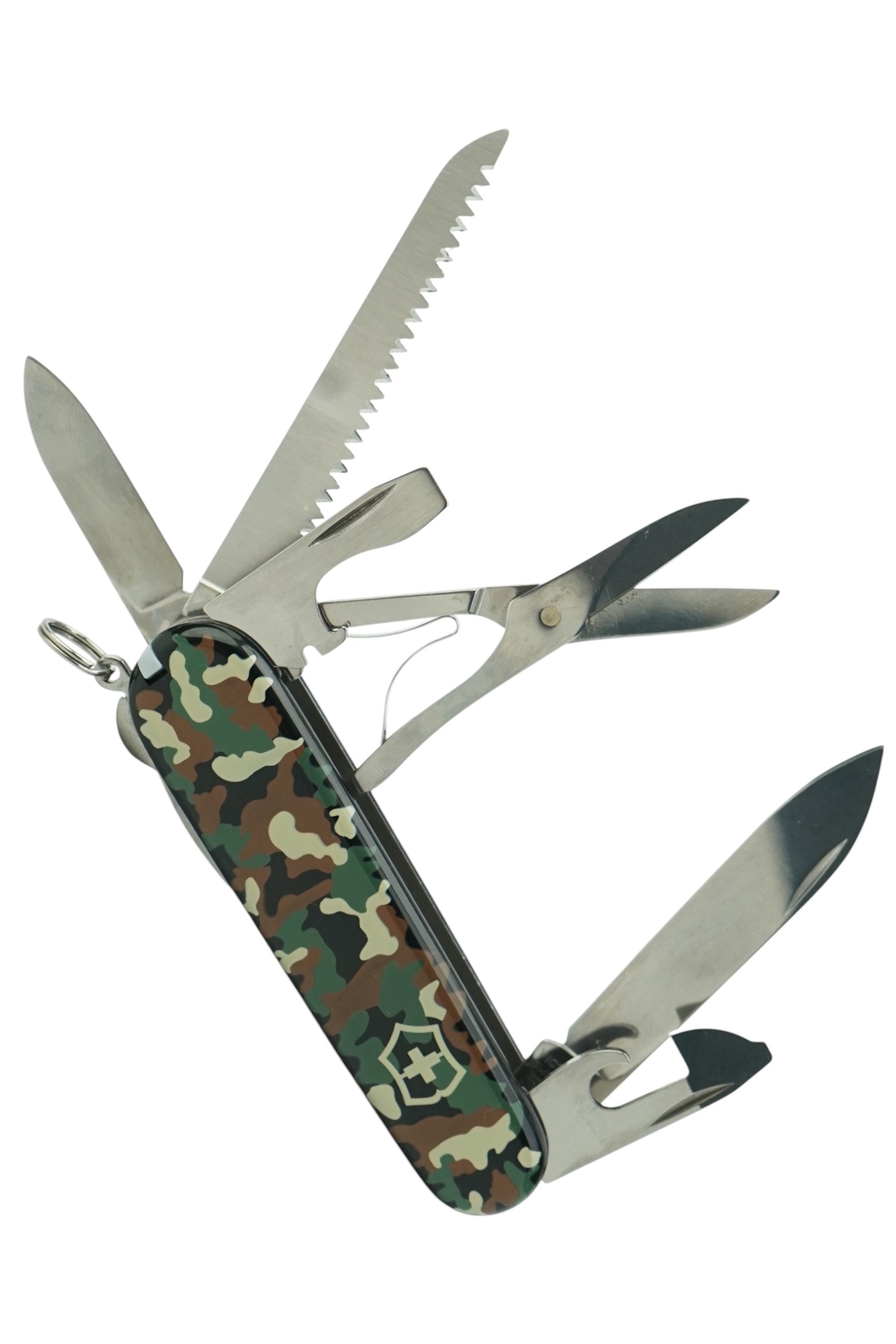 Всего же нож обладает 11 разнообразными инструментами, позволяющими выполнять 15 различных функций. Часть из них (большой и малый клинок, отвертки, кольцо для ключей) требуются постоянно. Другие инструменты (ножницы, штопор, зубочистка или универсальный крюк с пинцетов) необходимы реже, но все они всегда выручат в случаях нестандартных ситуаций.