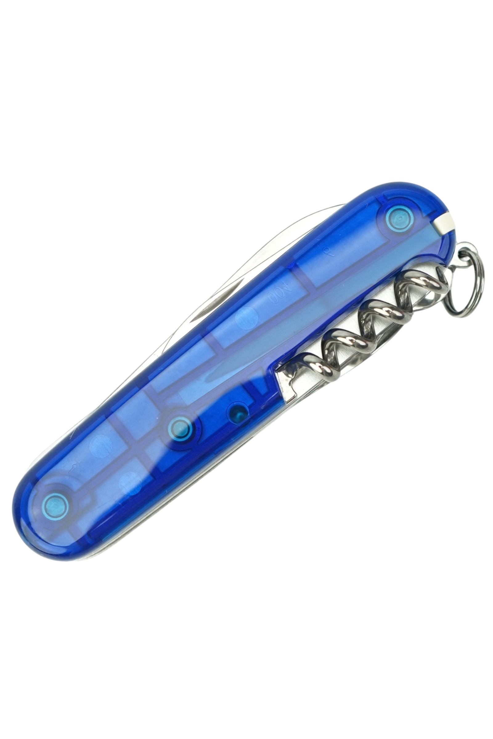 | Комплектация (?): | 1. Большое лезвие 2. Малое лезвие 3. Штопор 4. Консервный нож с: 5. - Малой отверткой (также для винта с крестообразным шлицем) 6. Открывалка для бутылок с: 7. - Отверткой 8. + Инструментом для снятия изоляции 9. Шило, кернер 10. Кольцо для ключей 11. Пинцет 12. Зубочистка 13. Ножницы 14. Многофункциональный крючок 15. Пила по дереву |