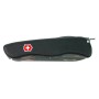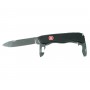 | Комплектация (?): | 1. Большое фиксирующееся лезвие 2. Штопор 3. Открывалка для бутылок с отверткой и приспособлением для снятия изоляции 4. Консервный нож с маленькой отверткой, которая может использоваться для крестообразных винтов 5. Шило, кернер 6. Кольцо для ключей 7. Пинцет 8. Зубочистка |