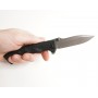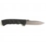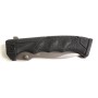 Инструмент имеет складную конструкцию, здесь установлен надежный запирающий механизм Liner Lock, закрывание происходит при помощи запирающей пластины. Кромка клинка не имеет зазубрин, она идеально гладкая. Пластиковая рукоятка черного цвета имеет удобную для хвата форму, за счет рифления на ее поверхности обеспечено надежное удержание инструмента.