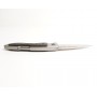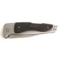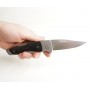Режущая кромка клинка ровная, зазубрины отсутствуют. Здесь установлен ножевой замок типа Back Lock, он характеризуется расположением кнопки разблокировки клинка в задней части рукоятки. Клинок надежно фиксируется, нет риска его складывания, однако следует учитывать, что одной рукой безопасно сложить нож с таким замковым механизмом будет проблематично.