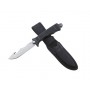 Нож поставляется в нейлоновых ножнах на широкой шлевке, которую удобно крепить на патронташ.