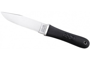 Особого внимания в этом аутдорном ноже заслуживает универсальная при всех хватах кратоновая рукоять. Она крупная (рассчитана на любую, даже крупную руку) и имеет нетрадиционную форму для ножей подобного типа: симметрична со стороны спинки и брюшка, поэтому весьма напоминает легендарный “Пентагон”. Рукоять плавно становится уже к середине, вновь расширяется к клинку и имеет овальное сечение. Около пятки рукояти предусмотрено отверстие для продевания темляка. С противоположной стороны она ограничена невысоким больстером из нержавеющей стали.