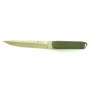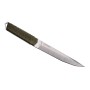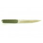 Нож отлично удерживается в руке при всех видах ударов и движений. Конструктивная система full-tang сделала его фактически не изнашиваемым гаджетом. Накладки для рукоятки выполнены из материала, окрашенного в цвет G-10. Это зелёный военный оттенок, имитирующий оплётку катаны.
