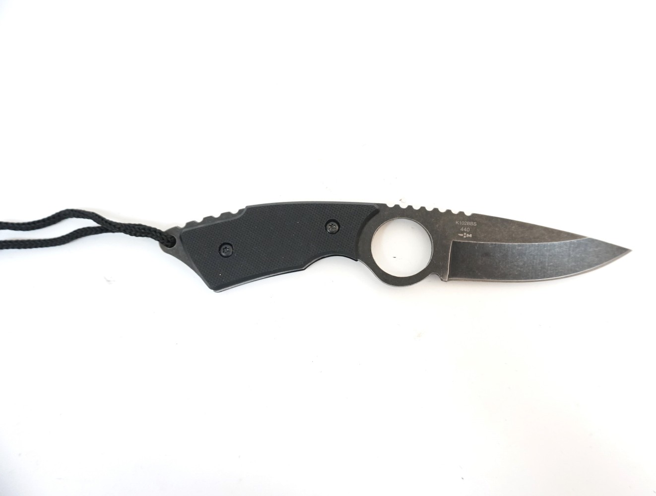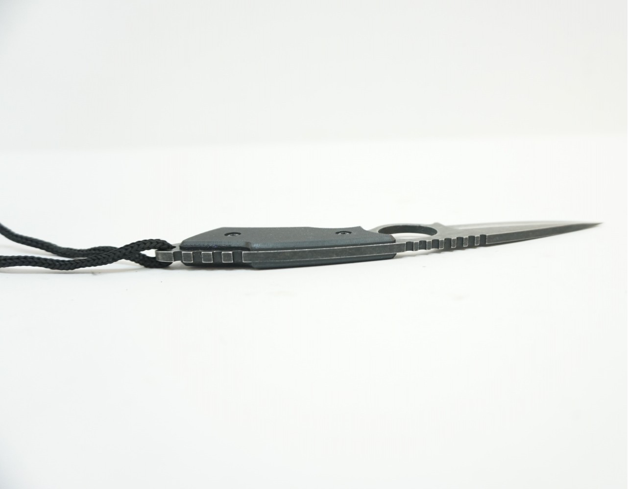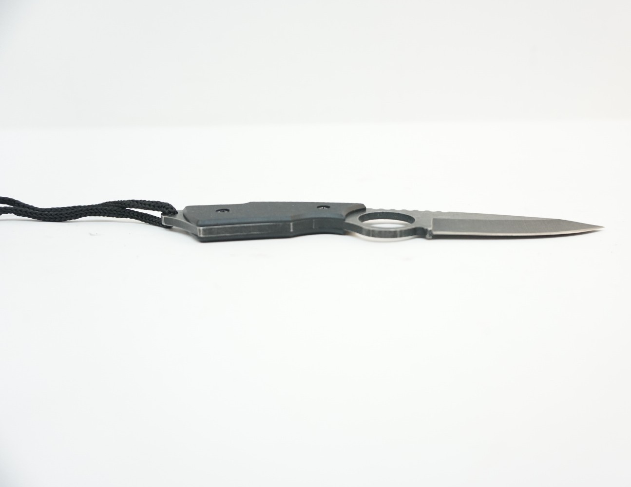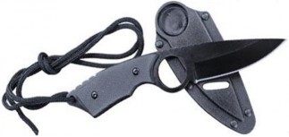 Нож изготовлен из нержавеющей стали 440, долговечной и надежной, его рукоятка пластиковая. В нижней части рукоятки имеется отверстие для темляка. Изделие комплектуется также практичными пластиковыми ножнами, что позволяет безопасно носить его с собой и в городе, и на природе. Нож глубокого черного цвета, его клинок дополнительно обработан антибликовым составом, покрытие матовое. Нож отличается компактными параметрами – длина клинка 7,8 см, общая длина – 18,5 см.