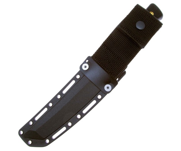 В комплекте с ножом идут пластиковые ножны с петлёй для ношения на поясе.