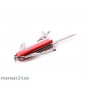 Каждый инструмент многофункциональника изготовлен из нержавеющей стали, а ножи оснащены гладкой режущей кромкой. Рукоять отделана пластиком красного цвета в виде накладок с двух сторон. Сама рукоять содержит не только выдвигающиеся элементы, но также и способна спрятать в себе несколько из них – зубочистку и пинцет. Дополнительно рукоятка оснащается фиксирующимся механизмом современного типа, который делает использование ножа не только еще более удобным, но и безопасным.