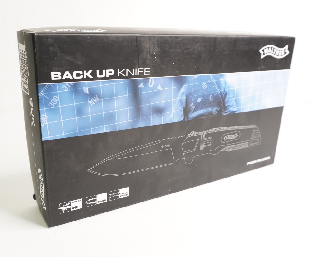 Клинок ножа имеет форму Spear Point, отличаясь наличием фальшлезвия и острия, напоминающего копье. Толщина обуха 4,5 мм. Клинок ножа Walther Backup Knife имеет твердость 57–58 Hrc. Для клинка использовалась сталь марки 440.