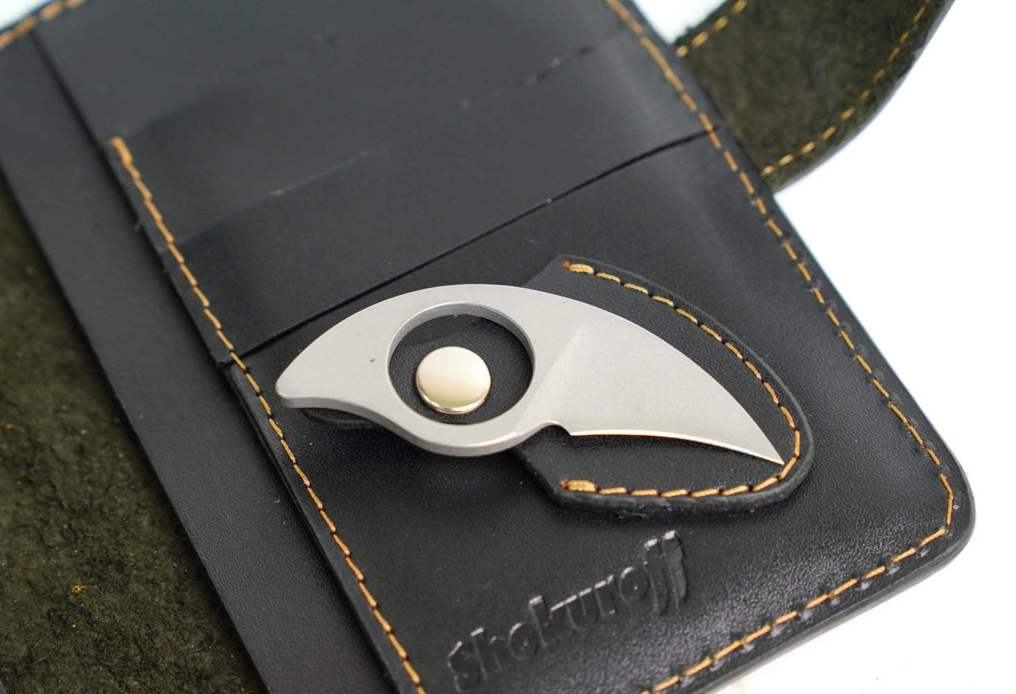 Стильный, практичный и компактный аксессуар от мастерской Шокурова в ножнах из натуральной кожи. Ручная работа, добротная кожа, качественное исполнение.