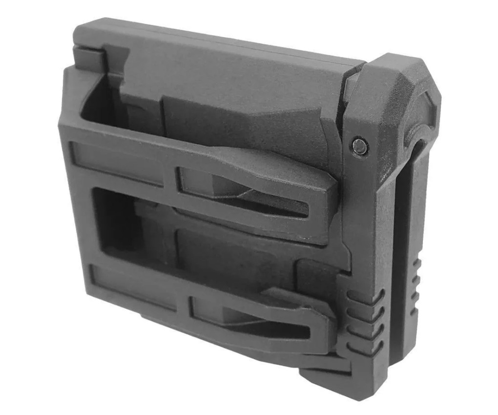 Обойма вмещает восемь стрел и служит для быстрой подачи снарядов в магазин арбалета Ek Archery Vlad. Это оригинальная обойма, которой комплектуется ваш арбалет Vlad. Крепление к планке Picatinny позволяет крепить обойму непосредственно на корпус арбалета или на крепление MOLLE вашего рюкзака или разгрузки. Само крепление на обойме можно снять и переставить в зависимости от того с правой или с левой стороны арбалета вам ее нужно разместить.