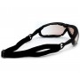 Очки PMX Power G-7780S с зеркально-серыми ударопрочными поликарбонатными линзами светопропускаемостью 50%. Обеспечивают защиту глаз спереди и сбоку от частиц, летящих со скоростью 400м/с.