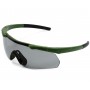Защитные стрелковые очки ShotTime Caracal с зелёной оправой и серыми линзами. Серые линзы обеспечивают хорошую цветопередачу и отлично защищают глаза от умеренно яркого солнечного света, сохраняя комфорт при работе в тени.
