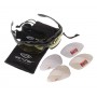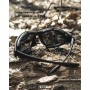 Дужки очков можно заменить на ремень с фиксатором, регулируемый по ширине. Оправу очков обрамляет уплотнительная мягкая подкладка, которая смягчает воздействие на лицо и препятствует попаданию пыли и ветра в глаза. Стильный дизайн очков позволяет использовать их и вне стрельбища.
