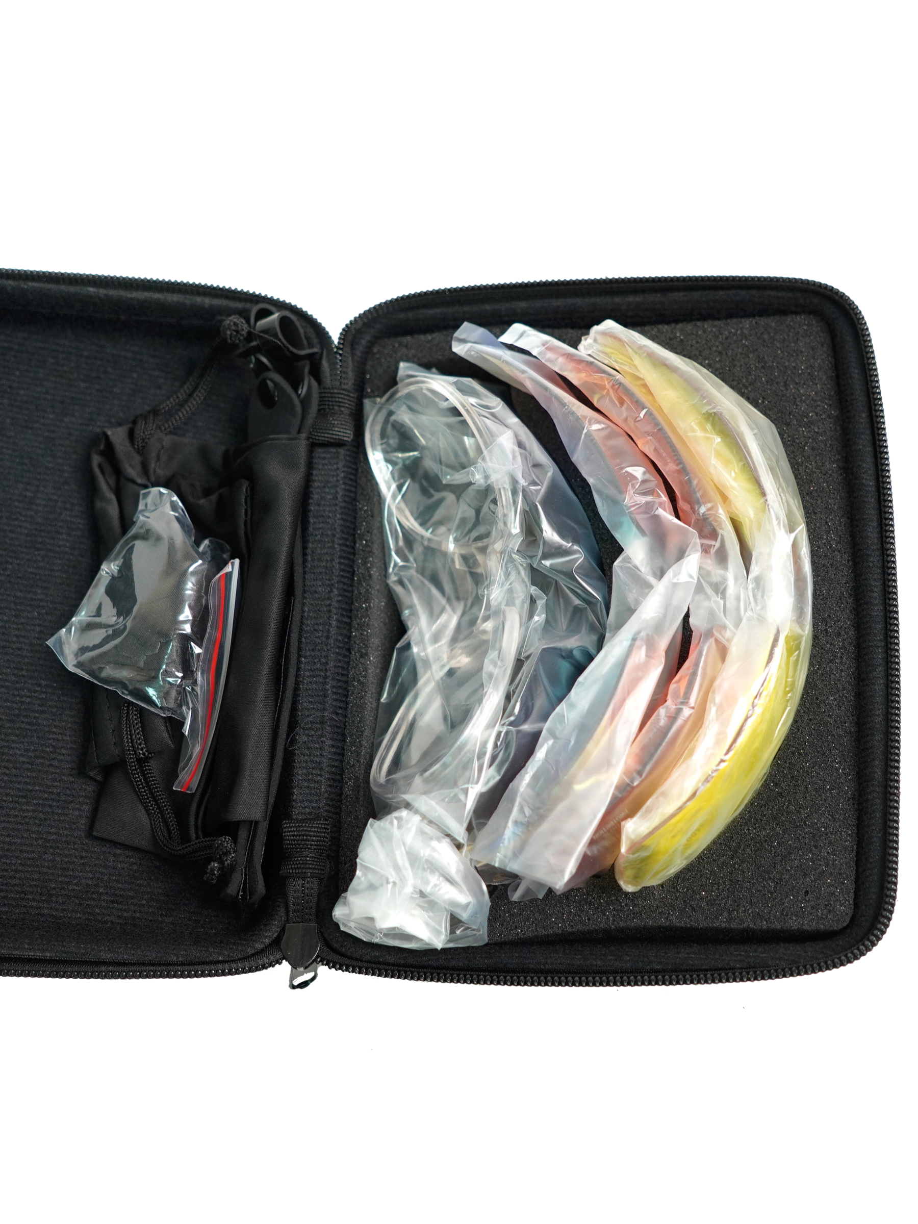 В комплекте с данными очками идет футляр для переноски и хранения, чехол, салфетка и четыре пары линз.