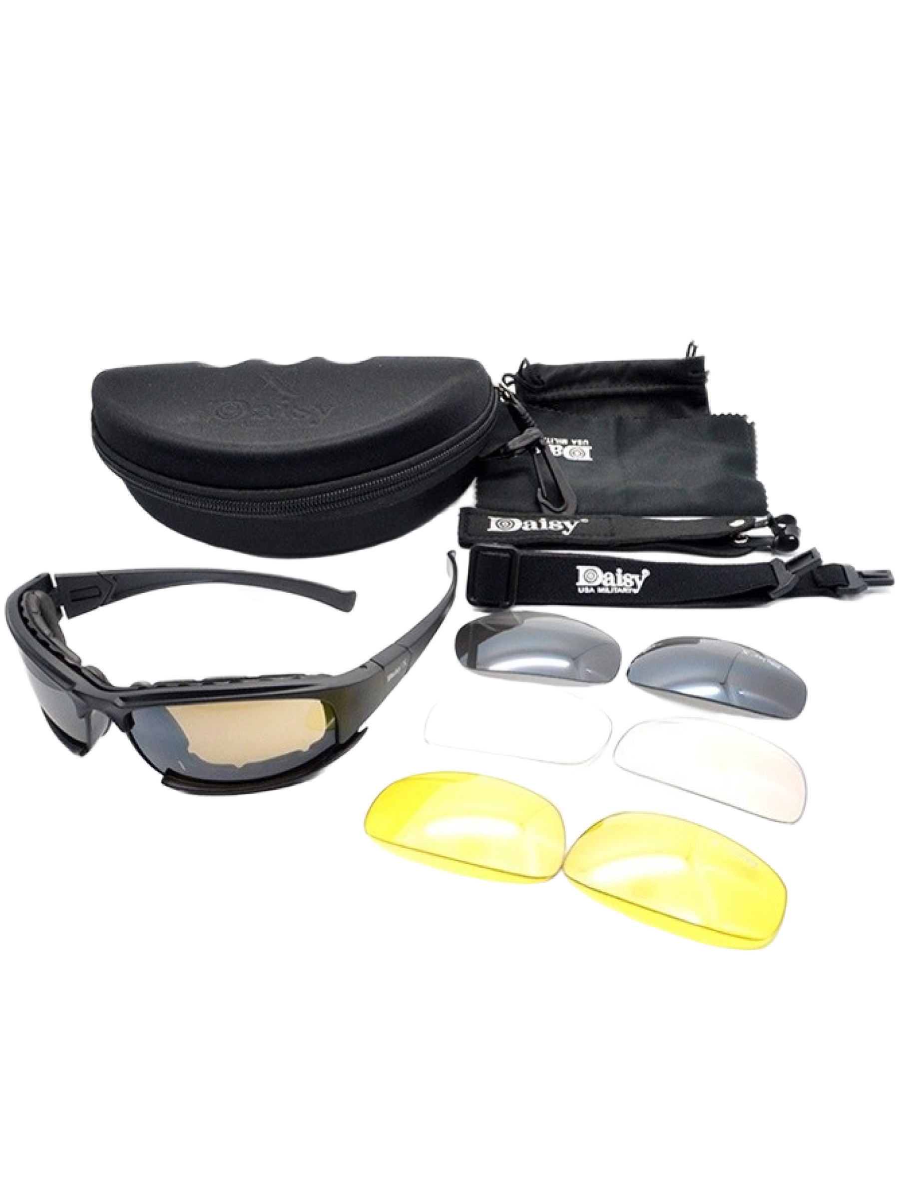 Очки Daisy A.C.M X7 - это качественная реплика, баллистические тактические очки из ударопрочного поликарбоната. Предназначены для работы в экстремальных условиях, страйкбола, стрельбы, вождения автомобиля, повседневного ношения. Выпускаются в 4-х сменных светофильтрах разных оттенков, имеют мягкую ветрозащитную вставку. Очки имеют возможность отсоединения дужек и установки на их место эластичного ремня, для надежной фиксации на голове пользователя.